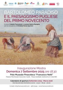 Santeramo in Colle celebra Bartolomeo Paradiso con una mostra dedicata al paesaggismo pugliese del primo Novecento. L'esposizione, ospitata presso la Pinacoteca Comunale “Francesco Netti” a Palazzo Marchesale, sarà aperta dal 7 settembre 2025 fino a marzo 2026. La mostra include 30 opere di Paradiso e altri artisti murgiani come Damaso Bianchi, Enrico Castellaneta e Francesco Romano. Saranno esposte anche opere del figlio di Paradiso, Hero. Questa iniziativa, realizzata in collaborazione con la Pinacoteca Metropolitana “Corrado Giaquinto” di Bari, mira a…