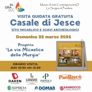 RESIDENZA CREATIVA presso Masseria JesceLaboratorio Affreschi di e con Gianni RoppoSabato 21 Marzo 2026Domenica 22 Marzo 2026INFO 340 167 10 65 donato 340 382 07 44 Laboratorio Affreschi1 Conoscenza dei materiali dell'intonacograssello calce sabbia di fiume ai pigmenti terre e minerali2 Disegno preparatorio cartone e spolvero3 Esecuzione pittorica su di un supporto naturale (cotto o pietra)Alla fine del Corso ogni partecipante avrà eseguito un affresco che porterà a casa.Il Corso è compreso di materiali escluso quelli personali (pennelli).Orari 9:00/13:00 Pranzo…
