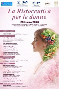 La Fidapa BPW Italy – Sezione di Altamura invita le socie all’incontro: “La Ristoceutica per le donne” 20 marzo 2026 – ore 18:00Sala Convegni A.B.M.C. “A. Giorgio”Piazza Zanardelli, 18 – Altamura Un importante momento di approfondimento sul ruolo dell’alimentazione come strumento di prevenzione, salute e benessere femminile. Interverranno autorevoli esperti del mondo medico, scientifico e della nutrizione:Prof. Vincenzo Lionetti, Dott.ssa Agnese Latorre, Prof.ssa Alessia Ritota e Dott.ssa Giuseppina Lavalle, con l’introduzione del Prof. Loreto Gesualdo. Un’occasione preziosa per informarsi e…