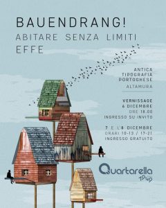 Mostra “BAUENDRANG Abitare senza limiti” che Quartarella ha voluto organizzare nella Tipografia con l’artista Francesco Di Ddio. La mostra resterà visitabile anche il 7 e l’8.